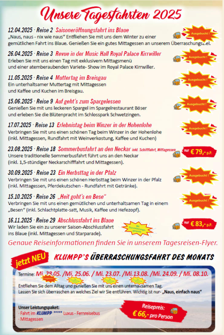Klumpp Bustouristik - Jochen Klumpp - Alte Pass-Straße 41 - 72250 Freudenstadt-Kniebis Telefon: 07442-6628 Fax: 07442-50388