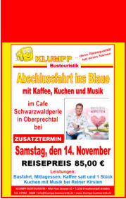 Klumpp Bustouristik - Jochen Klumpp - Alte Pass-Straße 41 - 72250 Freudenstadt-Kniebis Telefon: 07442-6628 Fax: 07442-50388